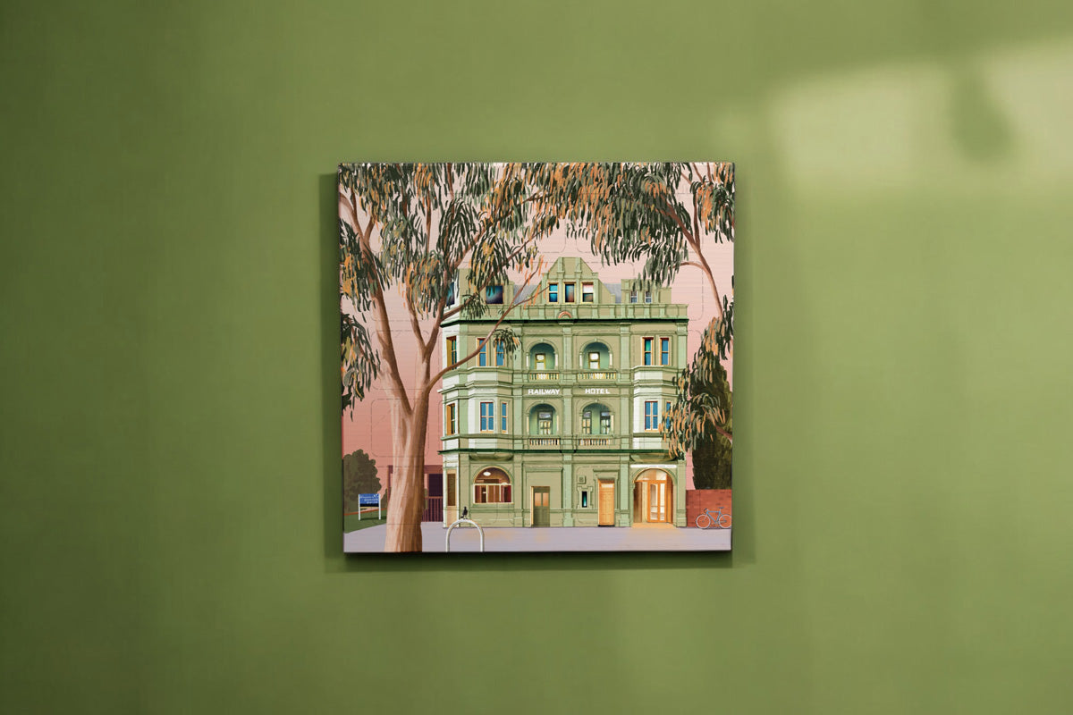 The artwork that adorns this year's calendar depicts The Railway Hotel, a storied, three‑storey, heritage‑listed pub in Brunswick, built nearly 140 years ago. Over its long lifespan it’s served as everything from a morgue to a bustling live music venue, with a stint as a hostel in between. This digital artwork has been created by Parul Sen, a Melbourne‑based digital artist originally from the vibrant city of Jaipur, India, who runs the creative practice Pink Wattle.