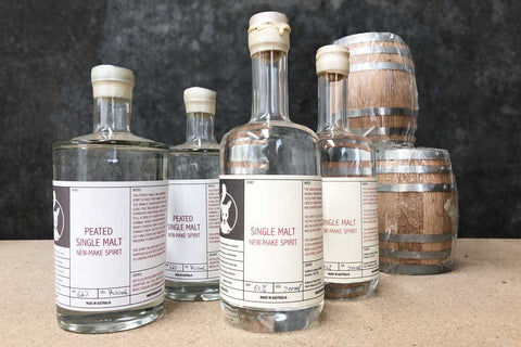 The single malt spirit is made for us from scratch using Australian malted barley by Belgrove Distillery in Tasmania. It's made from malted barley wash and double distilled in a pot still directly heated by an oil furnace.