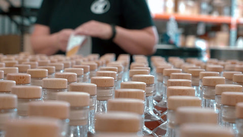 Our limited edition spirits are bottled exclusively in recycled spirit bottles which we de-label, wash and polish before filling. This is where a ton of elbow grease comes in handy.